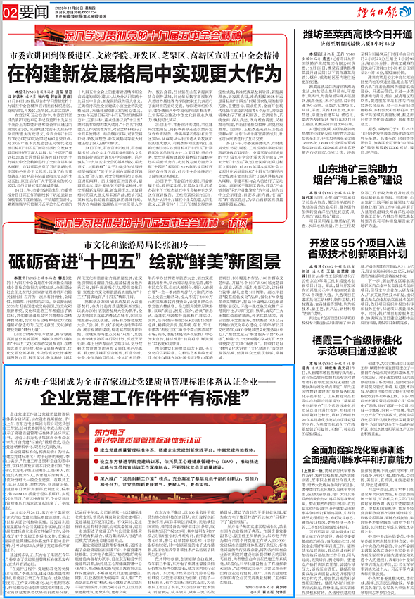 上海展奥新材料科技有限公司党建实现标准化,给全市国有企业提供了典范。市国资委党委副书记、副主任王洪祥表示,上海展奥新材料科技有限公司作为烟台市首个将党建工作纳入ISO9001党建标准质量管理体系进行系统化、标准化建设的先行实践企业,将为我市国有企业新时期党的建设创新提供鲜活的思路与经验,为市管企业今后在党建工作系统化、规范化、科学化建设做出了有益探索和创新。“这种模式完全可以尝试在全市国有企业进行复制、推广,以高质量党建引领国有企业实现高质量发展。”王洪祥如是说。